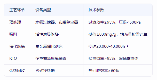 RTO裝置:廢氣預(yù)熱后進(jìn)入燃燒室(750-850℃),氧化VOCs,利用蓄熱陶瓷回收熱量(熱效率>95%)。