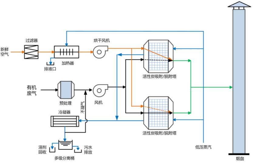 冷凝回收還適用于處理含有大量水蒸氣的高溫廢氣,在這種情況下,由于大量水蒸氣的凝結(jié),廢氣中有害組分可以部分溶解在冷凝液中,這樣不但可以減少氣體流量,對(duì)下一步的燃燒、吸附、袋濾或高煙囪排放等凈化措施也是十分有利的。在冷凝操作過(guò)程中,用來(lái)吸收被冷凝物質(zhì)熱量的工作介質(zhì)稱為冷卻劑。常用的冷卻劑為冷水和空氣,它們均是穩(wěn)定且易得到的物質(zhì)。