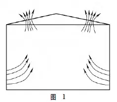 側(cè)面吹風(fēng)、上方抽風(fēng)把含塵空氣吹到廠房頂端,用風(fēng)機(jī)把含塵空氣抽排出去,如圖1所示。