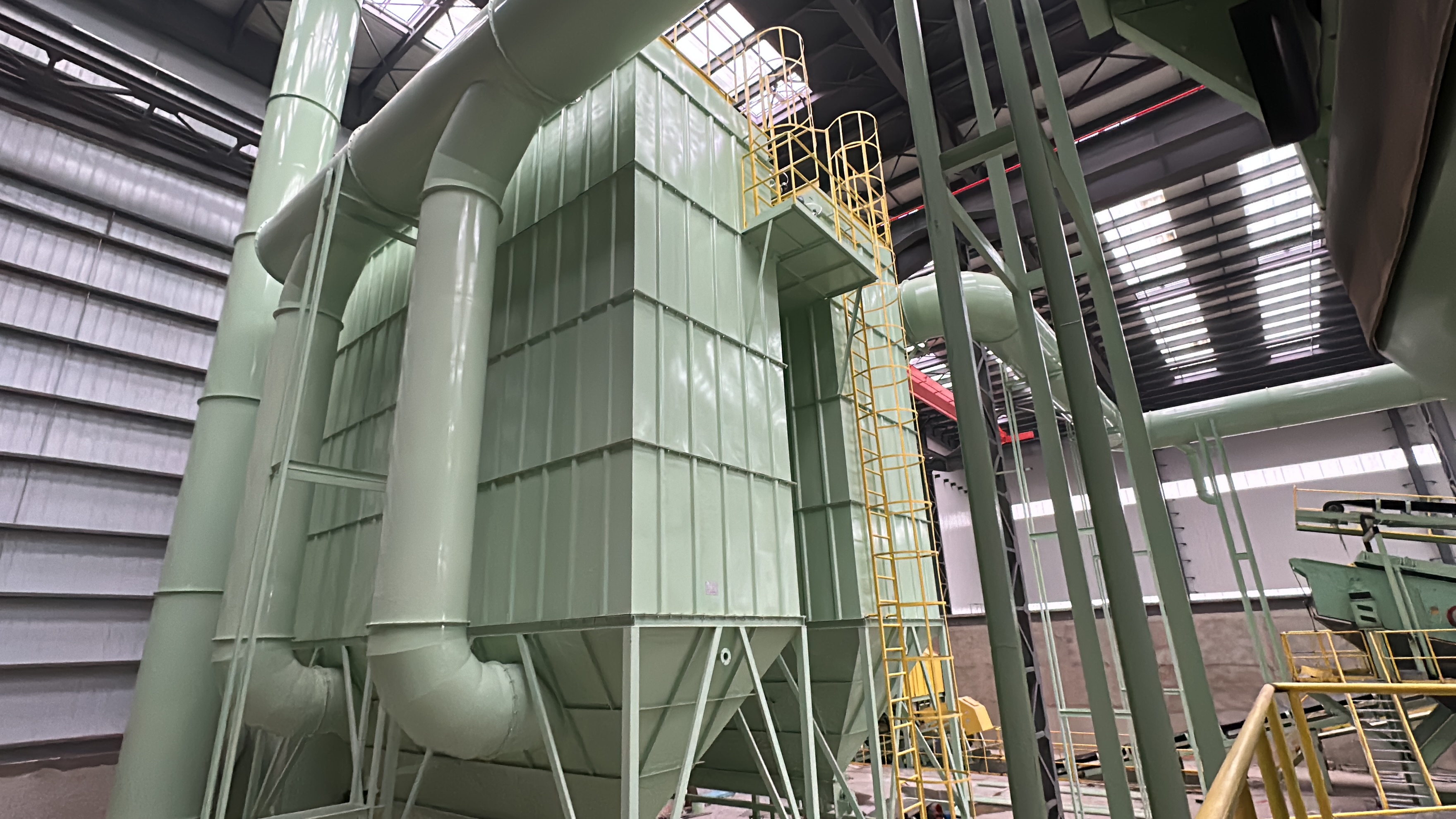 脈沖布袋除塵器主要有哪些優(yōu)點(diǎn)?脈沖布袋除塵器主要特點(diǎn)如下:(1)單位體積處理風(fēng)量大,除塵效率高。(2)可直接處理含塵濃度高達(dá)1000g/Nm3的含塵氣體,經(jīng)處理后氣體的排放濃度低于50mg/Nm3,也可根據(jù)用戶(hù)的特殊要求,滿(mǎn)足更加嚴(yán)格的排放標(biāo)準(zhǔn)。(3)針對(duì)各種不同類(lèi)型的煙氣,可采用不同的濾料來(lái)加以處理,使之達(dá)到排放要求,適應(yīng)性強(qiáng)。(4)采用的脈沖閥,性能可靠。脈沖閥使用壽命100萬(wàn)次。(5)采用先進(jìn)的PLC可編程控制器,定時(shí)或定阻自動(dòng)噴吹清灰,實(shí)行自動(dòng)化運(yùn)行,耗氣量小,清灰徹底,性能穩(wěn)定。脈沖式濾芯除塵器。(6)可在線檢修。分室換袋維修不影響主機(jī)的運(yùn)行。