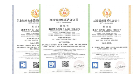 (鑫藍(lán)環(huán)保職業(yè)健康安全管理體系認(rèn)證證書(shū)、環(huán)境管理體系認(rèn)證證書(shū)、質(zhì)量管理體系認(rèn)證證書(shū))